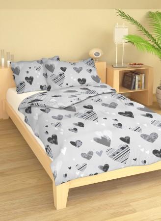 Srdce šedé bavlnená súprava obliečok krep 1+1